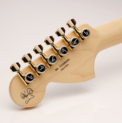 According to Fender Japan, the model also has a “blender for front and rear pickups”, and features locking tuners, a personally designed neck profile and a color-matched oversized headstock, as well as a six-saddle vintage synchronized tremolo.