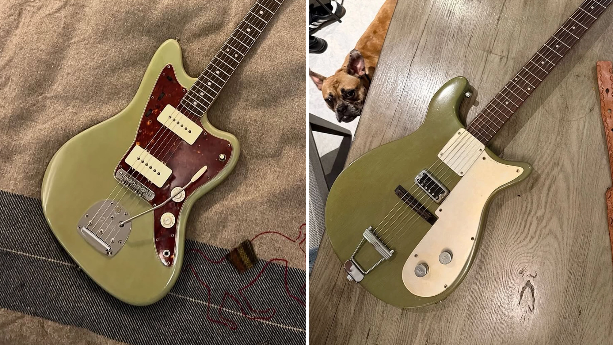 “This 65 Fender Jazzmaster and 61 Gretsch Corvette were stolen in the Highland Park area. Please share because time is of the essence.”