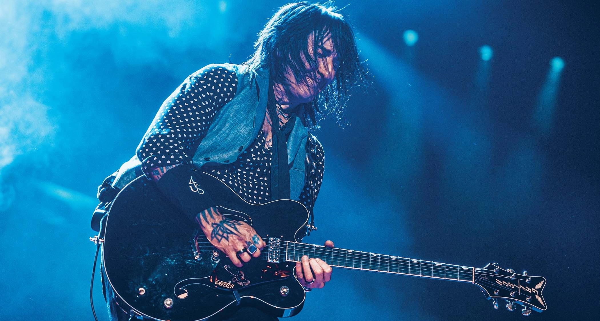Slash is a legend, so he has a sonic fingerprint that is very much him, although his tone has changed a lot since he first got in the band. I think he plays with a lot less gain, and his tone has gotten bigger, which makes my job harder. [Laughs] But obviously, my signature Gretsch has been the biggest piece in the puzzle for me – and lower-gain amps.