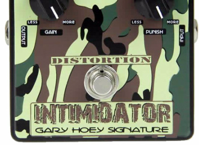 If the name "Intimidator," the camouflage motif or a Punish knob wasn’t enough of a tip-off, this is a seriously high-gain distortion pedal. It doesn’t clean up well, it doesn’t return phone calls, it doesn’t whisper, it screams!