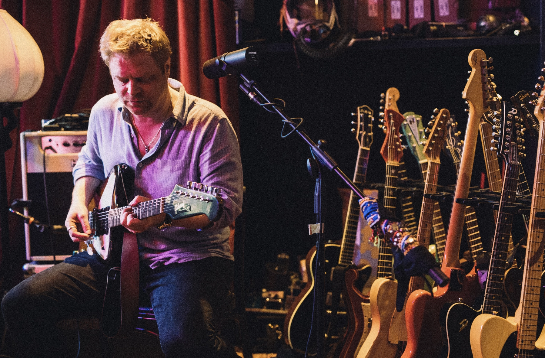 Bechtolsheimer’s baritone guitars are a key part of the Lono sound. “I first got interested when I saw a Taylor acoustic baritone in a music shop, tried it and instantly fell in love. I’ve got quite a collection now, including a Fender Bajo Sexto, tuned A-A (low to high: A, D, G, C, E, A), a Fender Bass VI, tuned E-E (low to high: E, A, D, G, B, E [octave below standard guitar tuning]) and a G# Richard Fortus signature baritone tuned B–B (low to high: B, E, A, D, F#, B). I run them through an Andy Ross (Rat Valve Amps) hand-rewired Fender Princeton.