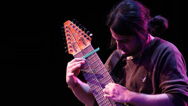 Martin — a Berklee graduate — plays a 14-string guitar he invented himself, which features two left-handed 7-string guitars on one neck.