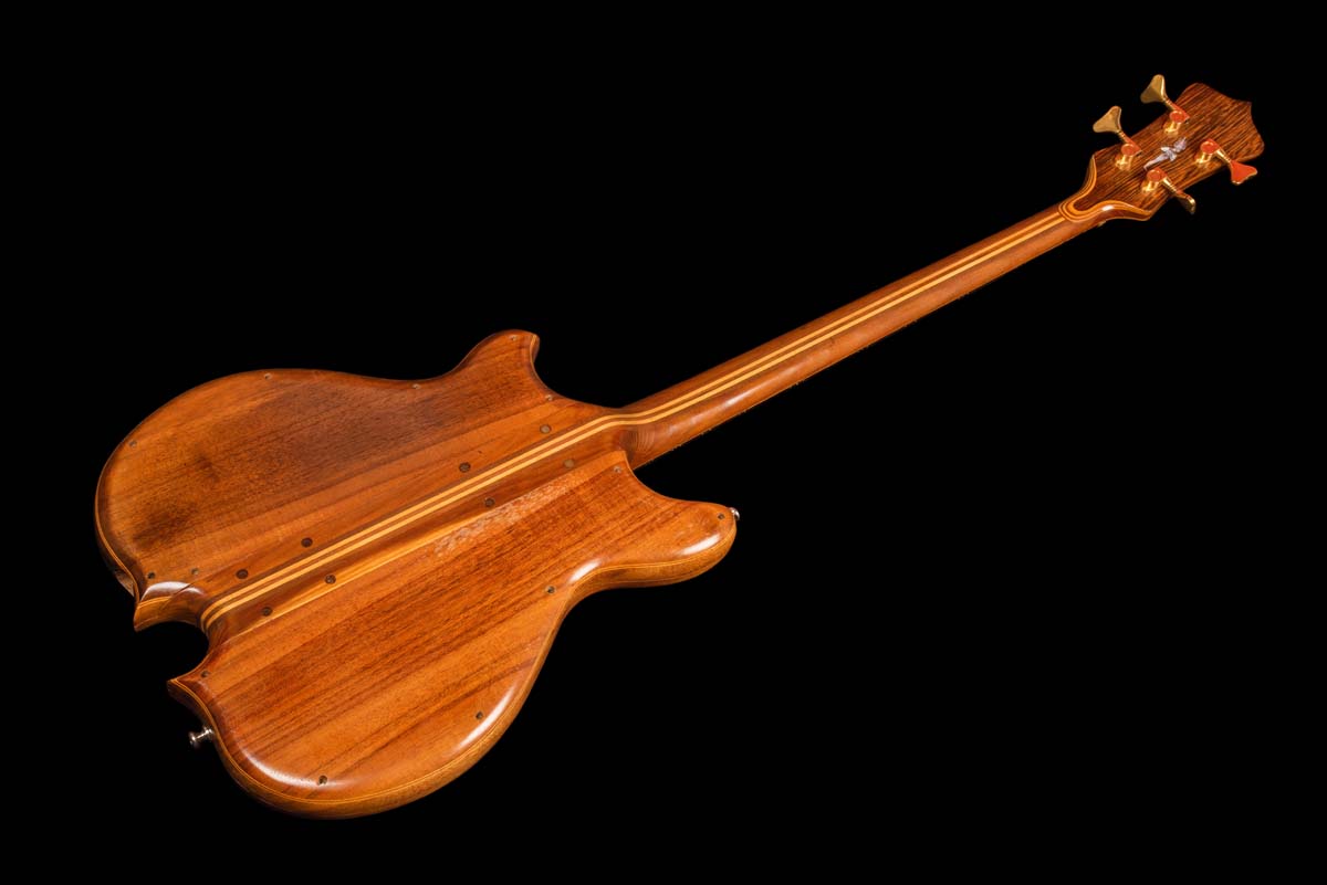 As Irwin still had the same piece of koa and the same bag of shell which he had used to make the original in 1975, a historically accurate duplicate was made and installed. This is a fitting final touch for what we feel is one of history’s most beautiful and significant bass guitars.