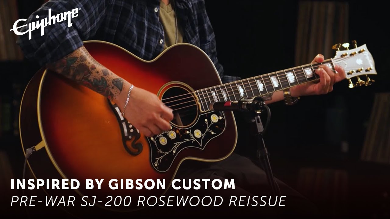 What is really intriguing about the trio we’re looking at today is that each comes with a little bit of historic detail. For instance, take the Pre-War SJ-200. Why this particular period? Well, when the model first appeared in Gibson’s catalogue in 1937, it had a back and sides made from rosewood and, thanks to a knock-on effect from the 1929 financial crisis in the US, only a handful of Gibson’s costly flagship acoustic ever saw the light of day.