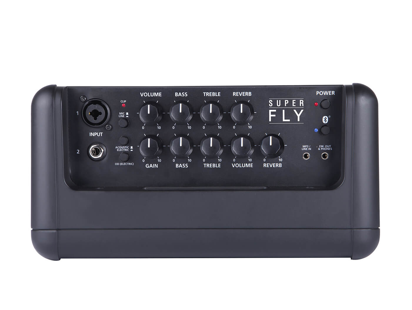 A 12-watt powered extension cabinet, which connects to the Super Fly and expands it to a 24-watt stereo rig, is also available.