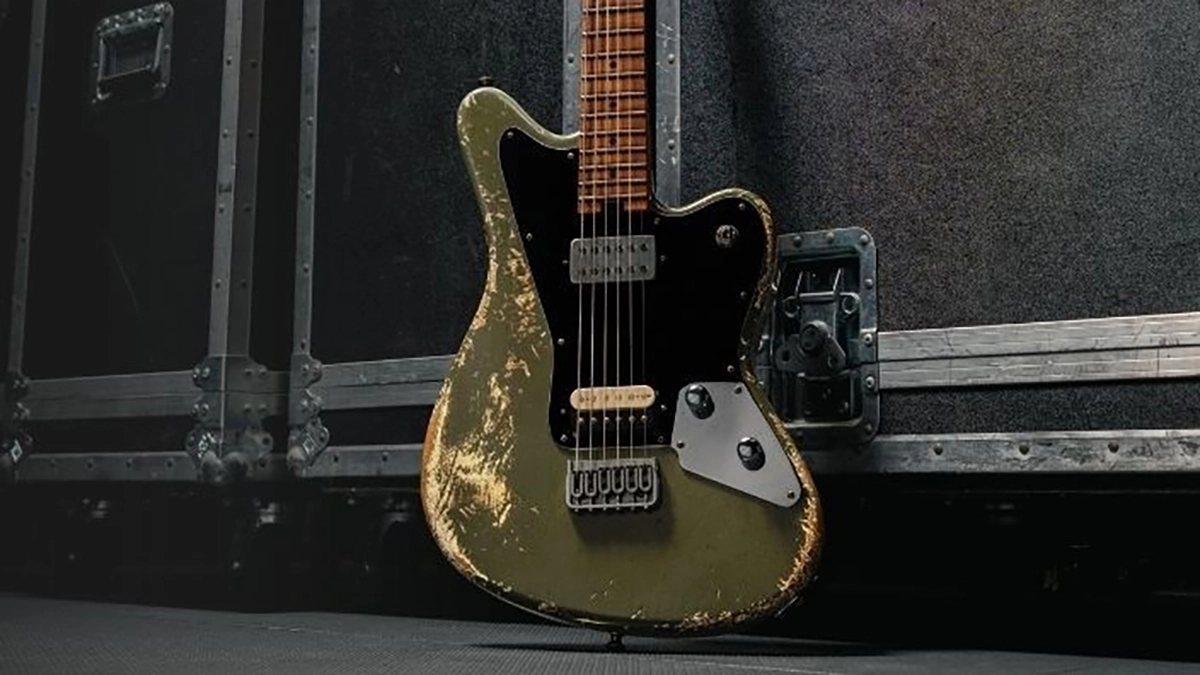 It is Mansoor’s green model that has been recreated here, right down to the heavily relic’c Army Drab Over White finish. Roasted ash has been used for the body, while caramelized flame maple features for the neck and fretboard.