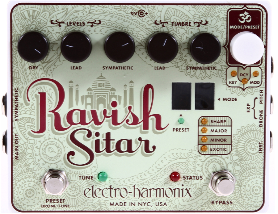 As we say in a recent Guitar World Buyer's Guide, it's the "world's best sitar emulation for guitar. With the Ravish Sitar pedal, Electro-Harmonix has streamlined the essence of the sitar into a compact enclosure that offers a polyphonic lead voice a tunable sympathetic string drones that dramatically react to your playing with adjustable timbre."