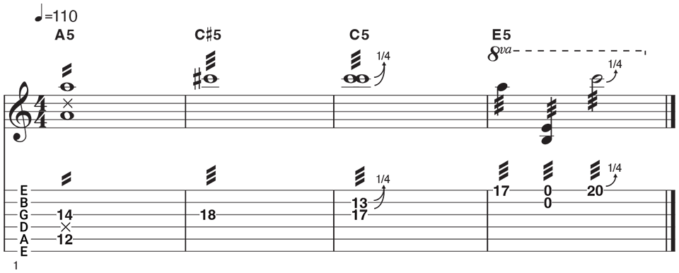 Radiohead’s Jonny Greenwood brought tremolo picking into the world of alternative and art rock. He blended measured and unmeasured tremolo, double stops, and octave shapes across wide string spans for a textural, orchestral vibe.