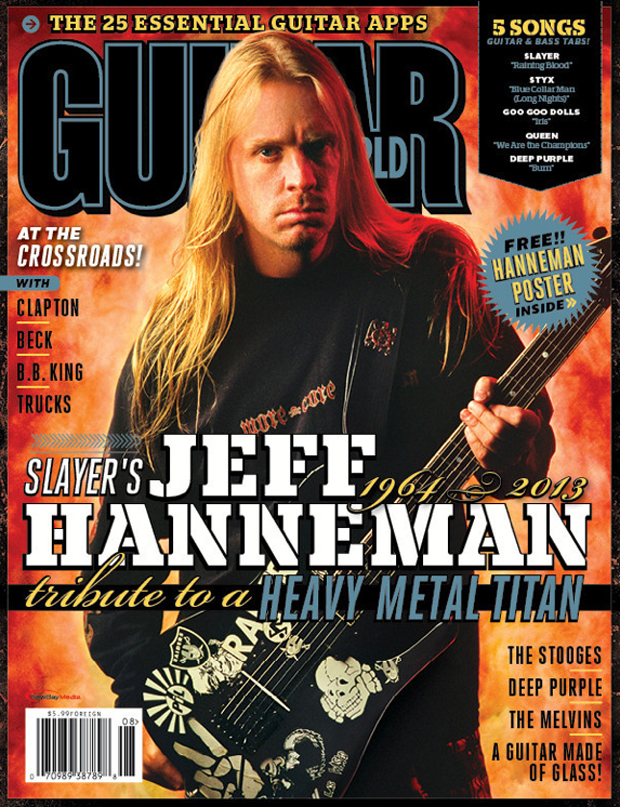 For the rest of this story, plus a Jeff Hanneman poster and features on Buzz Osbourne of the Melvins, Joe Bonamassa, Iggy and the Stooges, Steve Morse of Deep Purple, Eric Clapton's 2013 Crossroads Guitar Festival, the 25 Best Guitar & Music Apps and more, check out the August 2013 issue at the Guitar World Online Store.