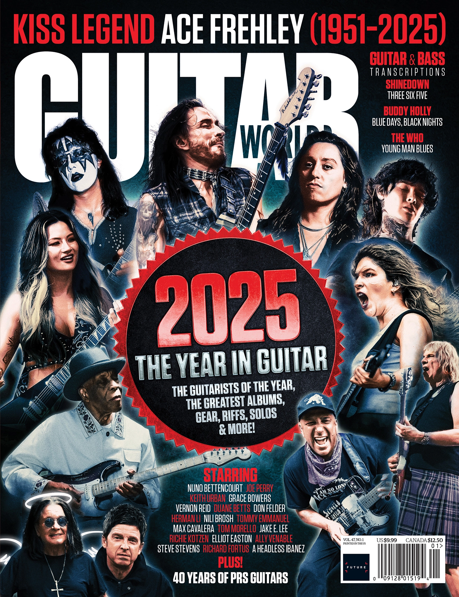 For the tabs that go with most of the videos below – as well as the interviews from the issue (including Ace Frehley, Nuno Bettencourt and millions more), plus gear reviews, song transcriptions and Power Tools, pick up the new issue (starting December 2, 2025) on newsstands.