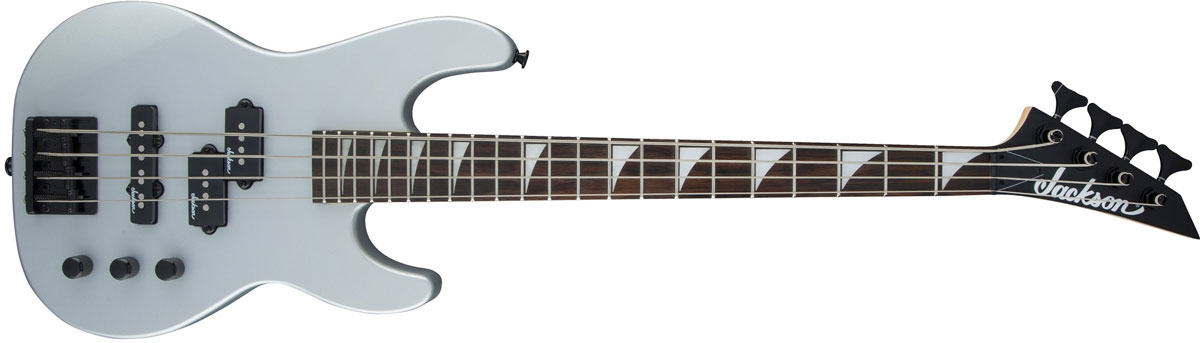 The Jackson JS Series Concert Bass Minion JS1X features a shortened 28.6-inch scale length poplar body, as well as a bolt-on maple neck with graphite-reinforcement rods and a 12-inch-radius amaranth fingerboard with 22 jumbo frets and pearloid sharkfin inlays.