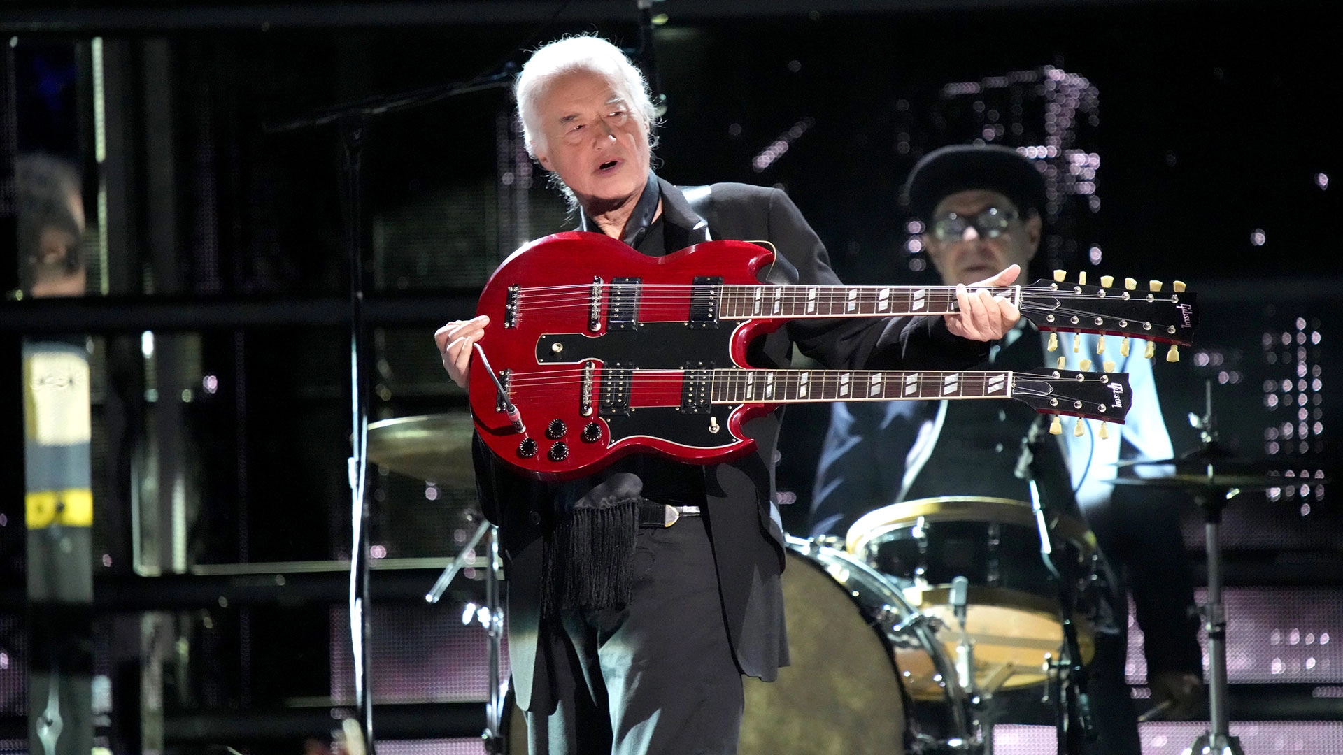 This time, though, the Led Zeppelin man appeared holding his iconic Gibson ES-1275 doubleneck (famously used on Stairway to Heaven) and performed the full two minutes and 25 seconds of the track on the 12-string neck.