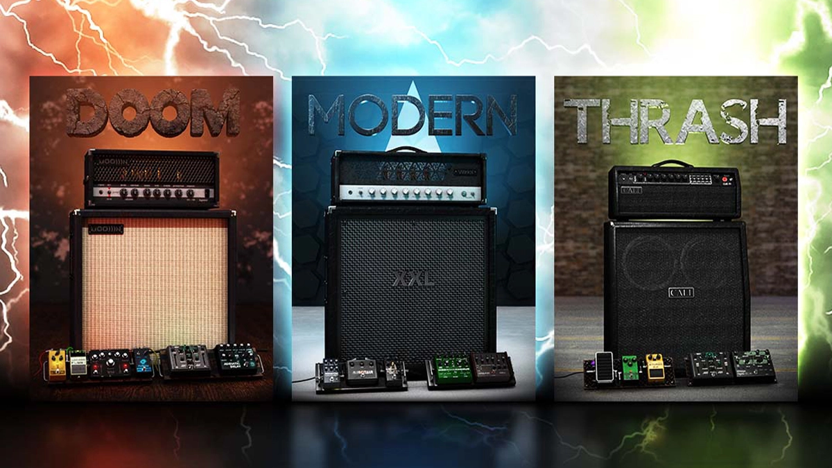 In terms of specifics, the Doom pack caters to – yep, you guessed it – doom metal players, and boasts amps inspired by a 1970s Sunn Model T, Orange Rockerverb 100 MKII and Silvertone 1484.