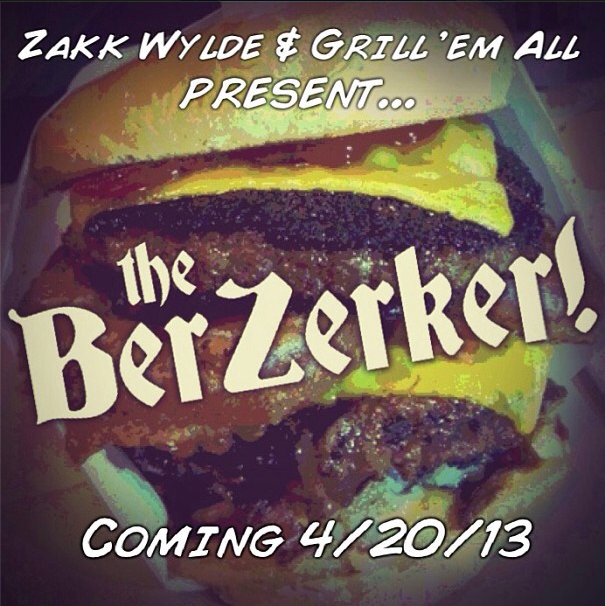 Zakk Wylde has teamed up with Grill ‘Em All to create the Berzerker Burger, a hamburger with two blackened half-pound patties, Eagle Rock Solidarity battered onion rings, white truffle pomme frites, chipotle ketchup, cheddar and thick-cut bacon, all smothered in chili.