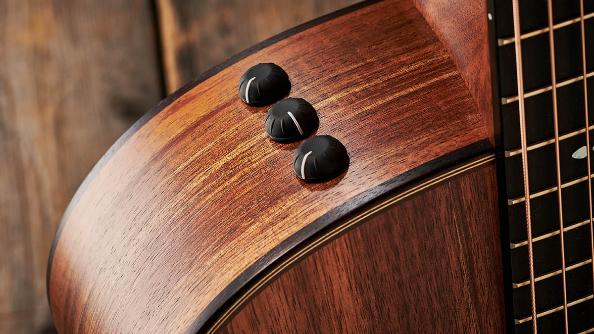 This move was made to better reflect and transmit more of the instrument’s natural sound. With simple volume, treble and bass knobs mounted on the top bout next to the neck heel, it’s an intuitive system that you’ll probably set once and then forget. And what’s not to like about that?