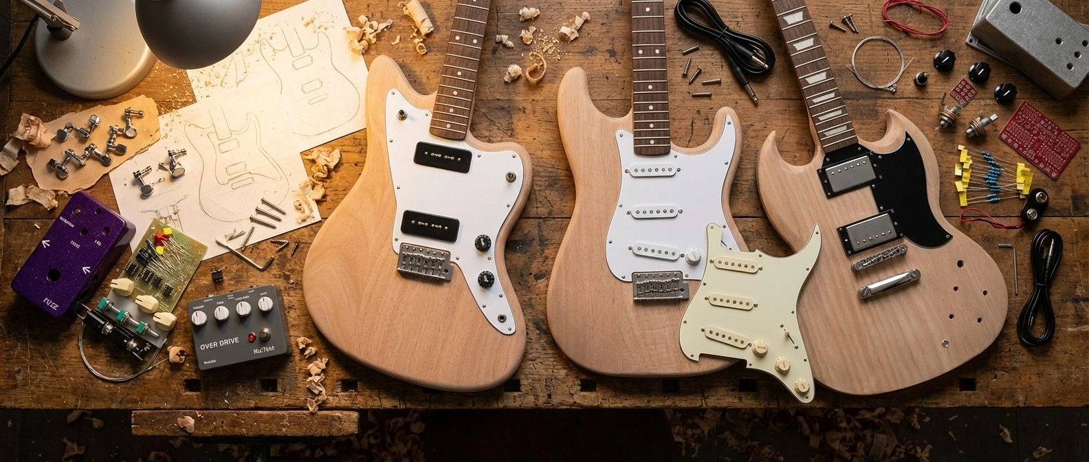 These self-assembly guitar and pedal kits make great projects and are even suitable for guitar-building newbies